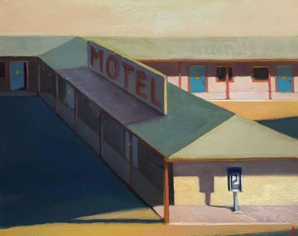It was a series of discoveries that led me to this current state of my practice. Looking at a number of artists I admire such as John Register or Richard Diebenkorn, I noticed that lots of their paintings had no figures in them. Yet they still spoke to me. When you work on a film set, there is a lot of time spent tweaking set dressing, lighting and camera composition to make the ideal frame. I began taking that idea and applying it to my painting process, adding and subtracting things as needed - sort of being my own set designer and director of photography.